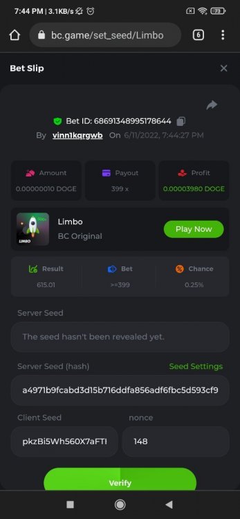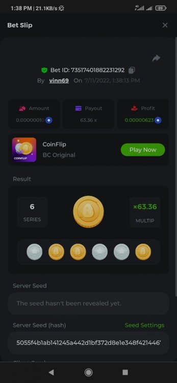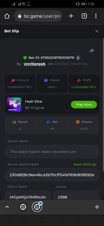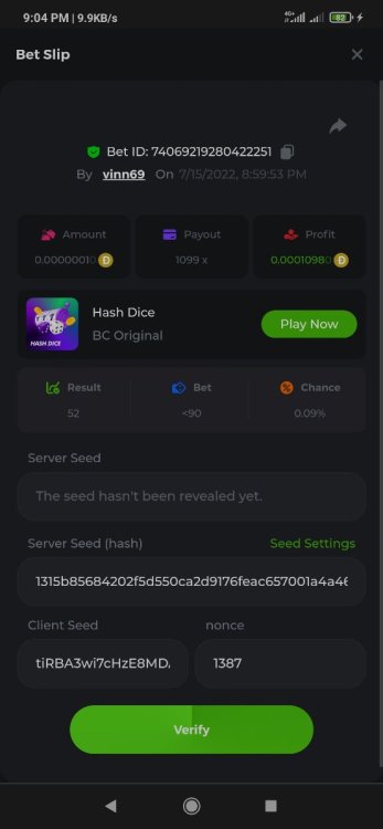 • Favorite Game Hash Dice