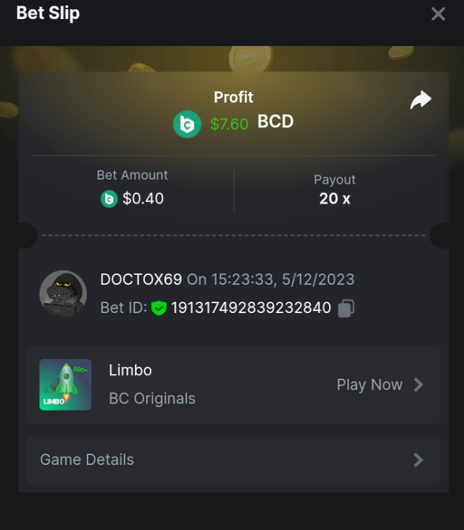 DOCTOX69 replied to BCGame_Maxim's topic in Sportsbook Promotions